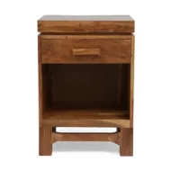 Smaart Craafts Handcrafted Boho Nightstand Set (Set of 2)Add elegance and functionality to your home with our handcrafted boho nightstand set. Made from durable acacia wood, each piece features a unique knotted wood design, a spacious drawer, and a bottom display shelf for organization. Perfect for bedside or living spaces, this set combines timeless style with practical storage to elevate your decor. Features: Handcrafted Design: Each piece is one-of-a-kind with natural variations. Boho Aesthetic: Rich acacia wood with a block handle for a rustic touch. Ample Storage: Includes a drawer and bottom shelf for easy organization. Perfect Size: 18” W x 16” D x 26” H, ideal for versatile use.